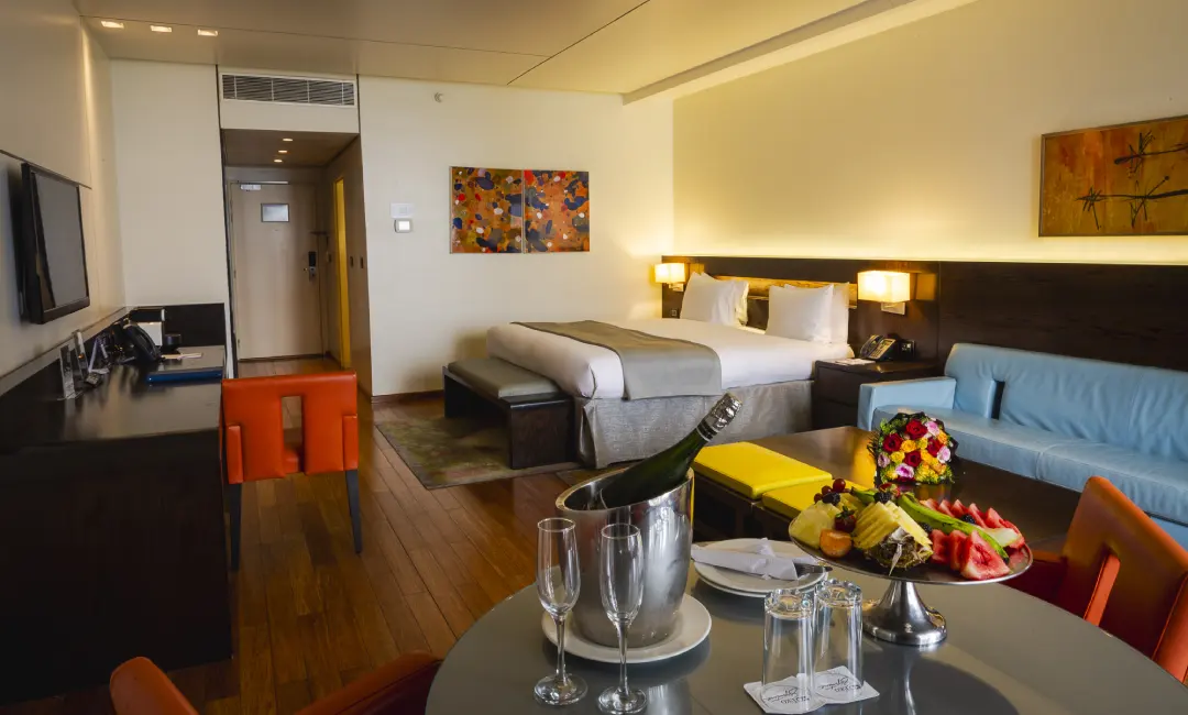Modern high-rise hotel in Victoria Island with skyline views.